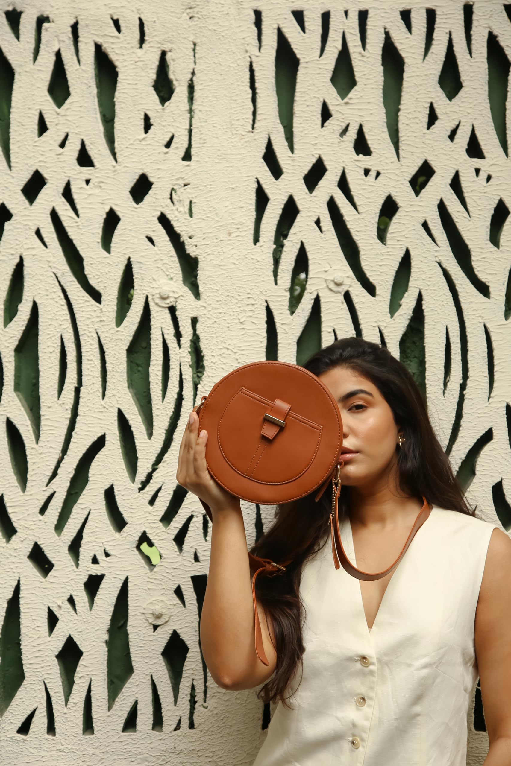 This beautiful round Sling bag is a go-to-bag for all your moods !! Inspired from the mother earth itself , this vegan leather women sling bag has sleek and sophisticated yet a quirky feel. This bag will be your wildcard to show off your own individual style . This is an everlasting statement piece in your wardrobe . Round sling bags will never go out of fashion :)