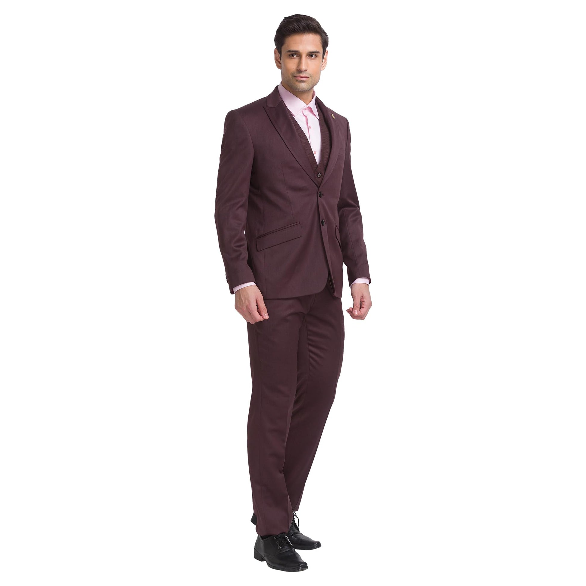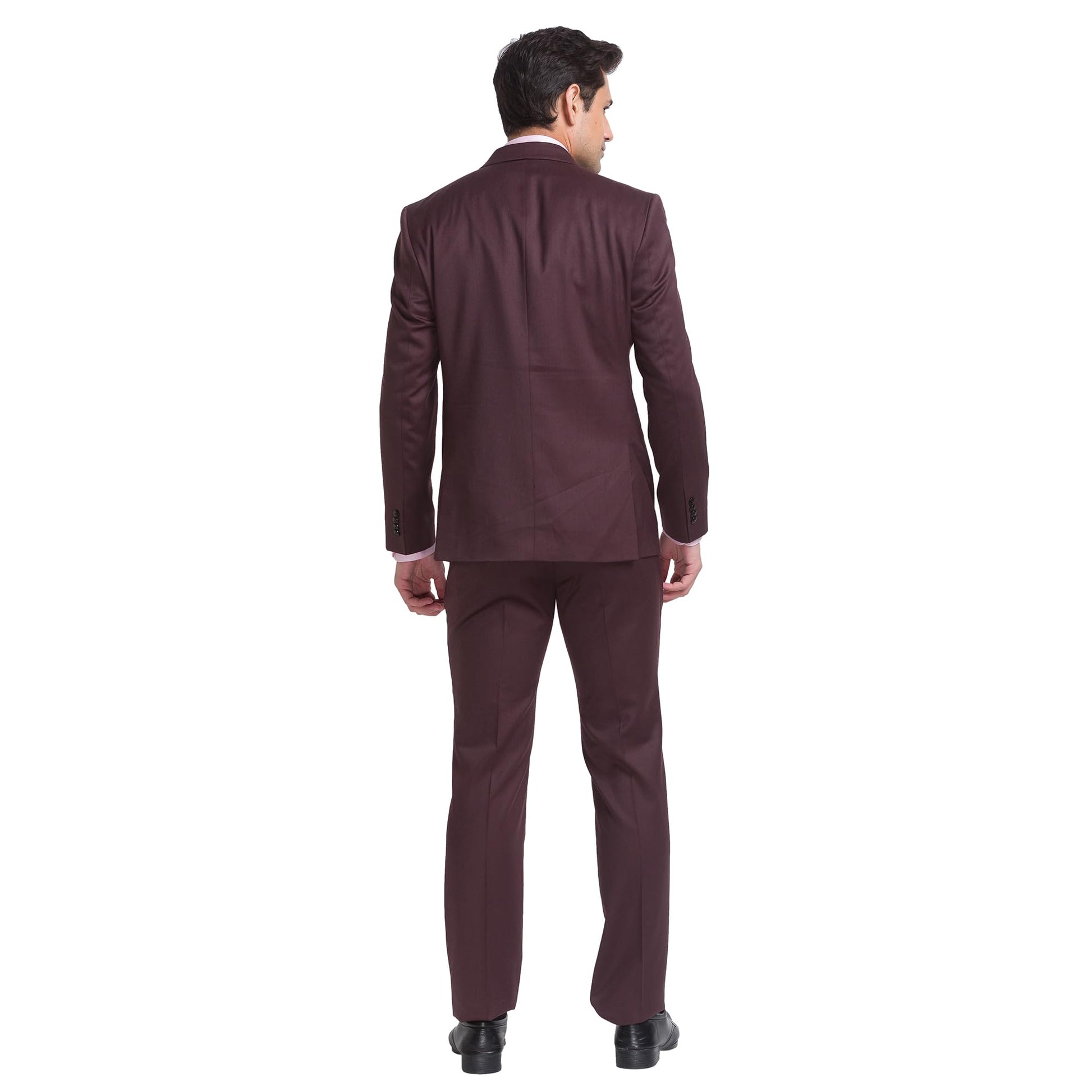 Raymond Men Contemporary Fit Solid Pattern Poly Wool Blend Peak Lapel Flat Front Formal Suit (Size: 104)-RIDH00662-O7 Dark Brown