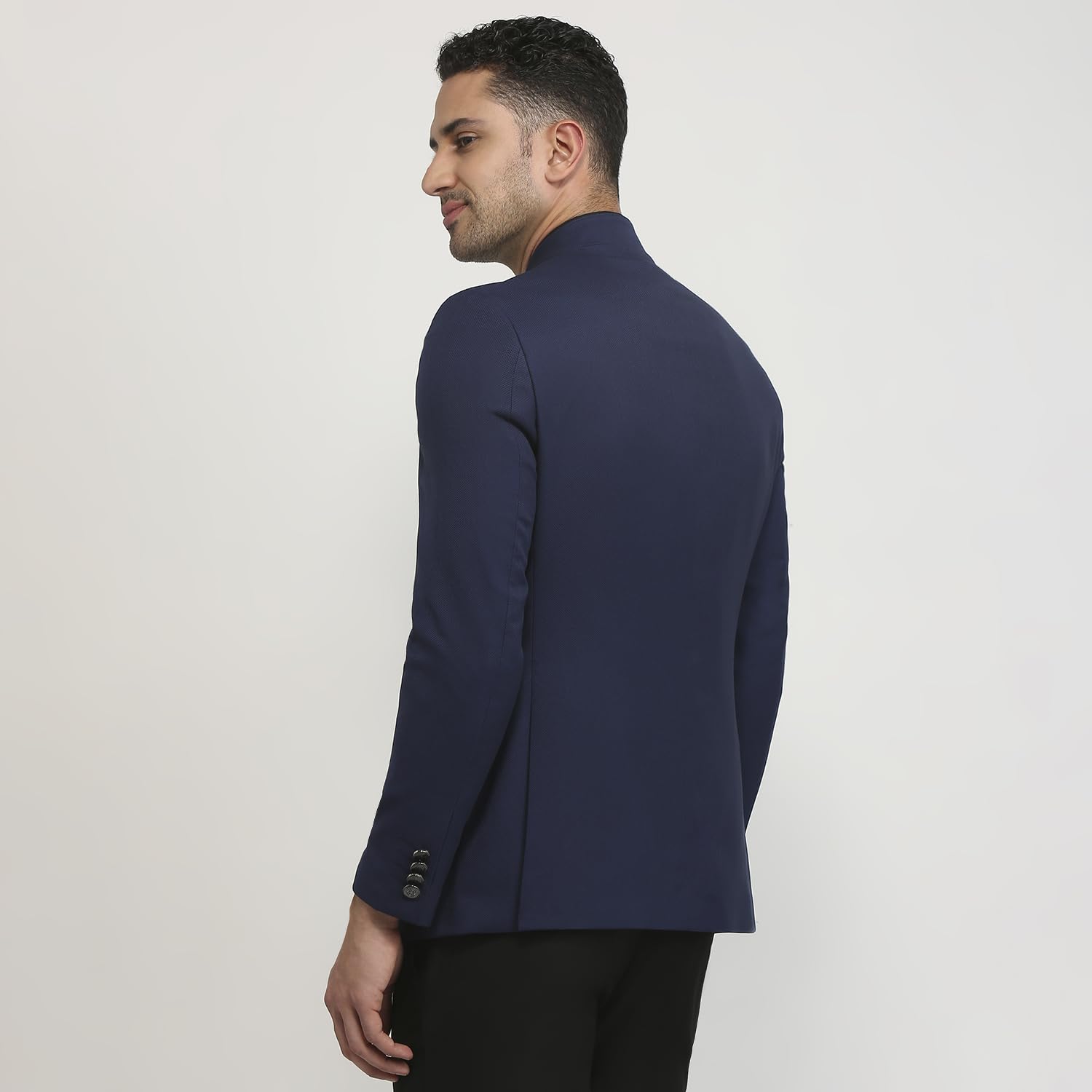 Raymond Men Regular Fit Solid Pattern Poly Rayon Blend Stand Collar Full Sleeve Ceremonial Jacket