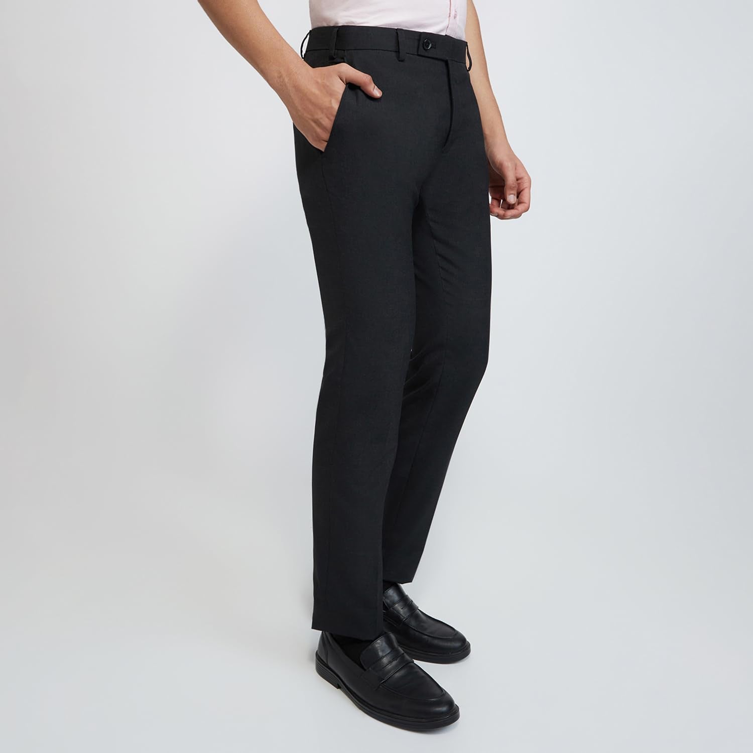 Raymond Men Slim Fit Solid Pattern Poly Viscose Blend Flat Front Formal Trouser (Size: 34)-RMTS05793-G8 Dark Grey