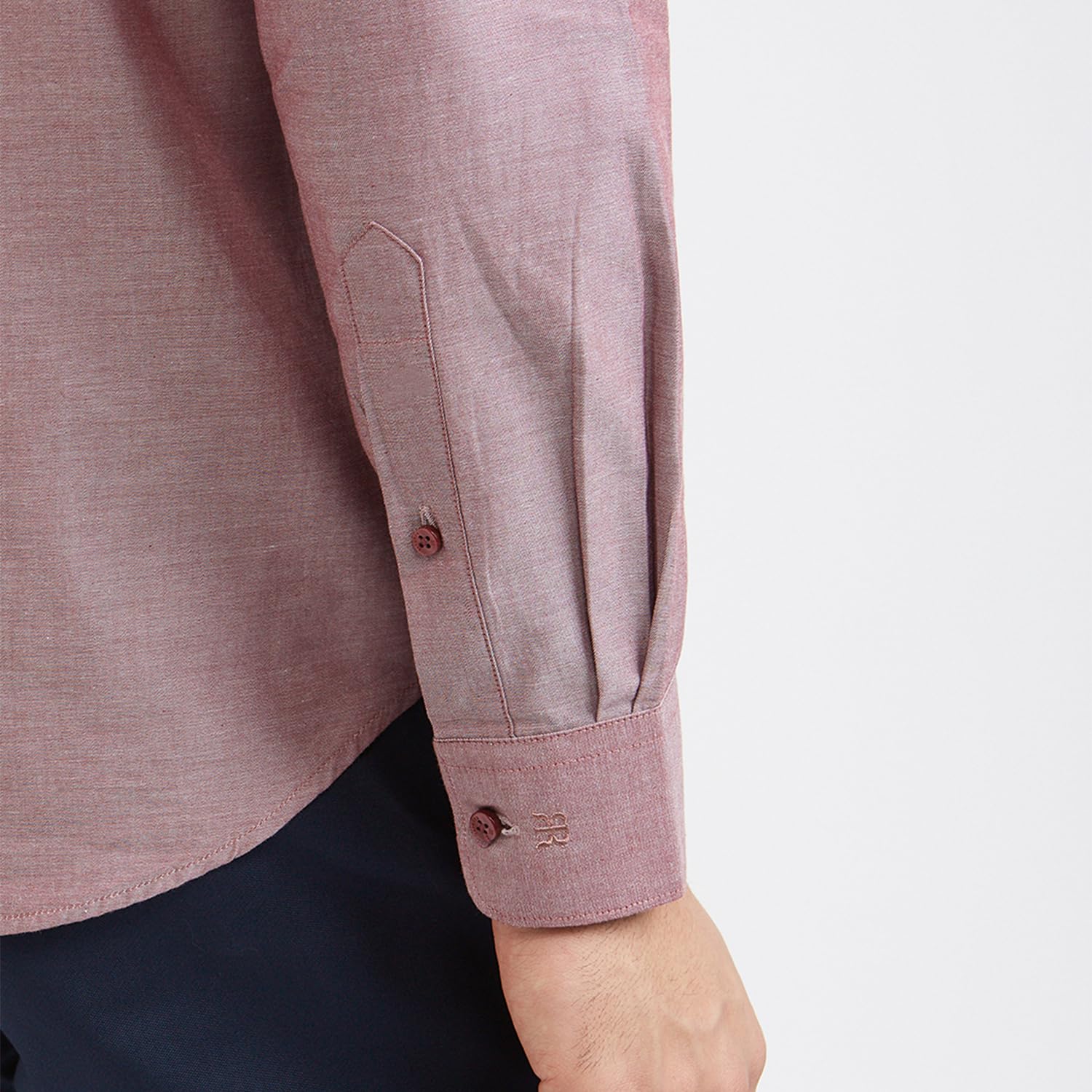 Raymond Men Slim Fit Solid Pattern Pure Cotton Semi Cutaway Collar Full Sleeve Formal Shirt (Size: 42)-RMSX12950-R6 Red