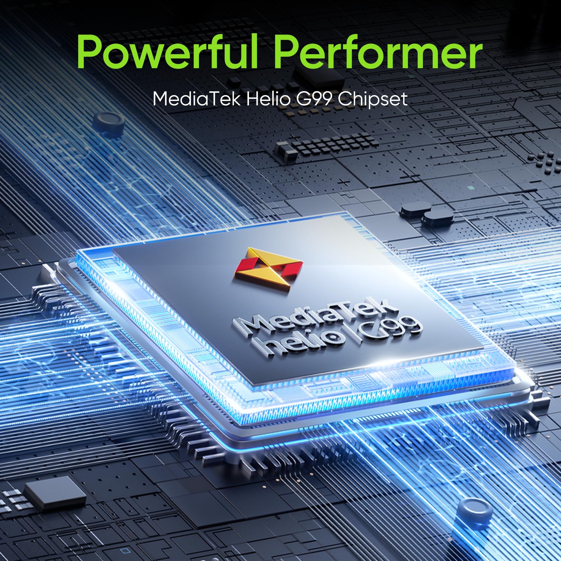 - 【Processor】:- MediaTek Helio G99 Chipset || CPU: 6nm Octa-core, Maximum frequency 2.2GHz, A76×2 2.2GHz, A55×6 2.0GHz || GPU: Arm Mali G57 || realme UI 4.0 for Pad Based on Android 13 | A true powerhouse chipset to get you reliably smooth performance. Boasting a benchmark score of 455,348 two flagship A76 cores up to 2.2GHz, and advanced 6nm process technology, you get smooth power output with low power consumption, for longer-lasting power built with smooth at the core.
