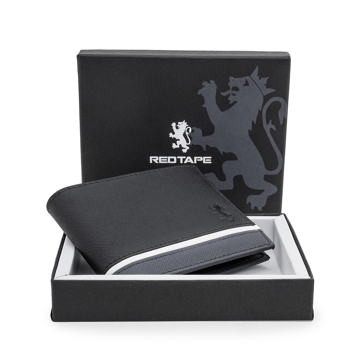 Red Tape Black Men's Leather Wallet | RFID Blocking Bifold Purse for Men with Card Holder & Cash Compartments | Slim & Stylish Wallet for Daily Use, Travel & Gifting