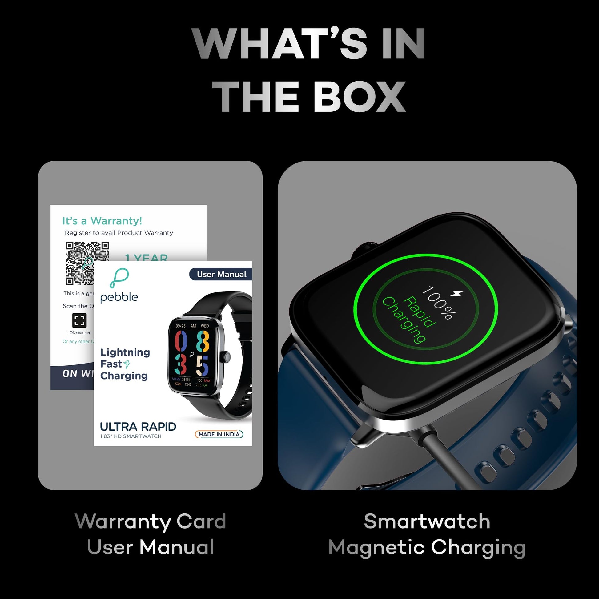(Refurbished) Pebble Ultra Rapid 1.83" HD Display. India's First Fastest Charging, Premium Metal Built, Unisex Design Smartwatch (Winter Blue)