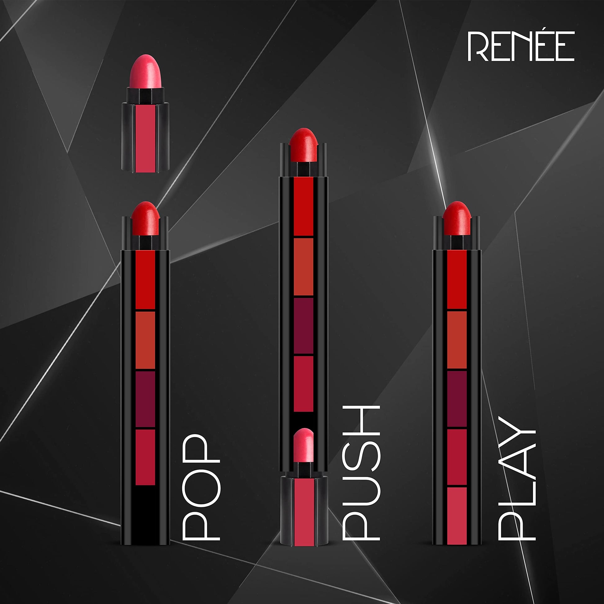 - Intense color with one swipe application - Renee Fab 5 in 1 lipstick is curated with a unique formula that gives high color pay-off with just one stroke of application. Specially created to make your daily makeup all the more easier and quicker, Renee Fab 5 in 1 lipstick is perfect for On-the-go makeup and quick touch-ups.