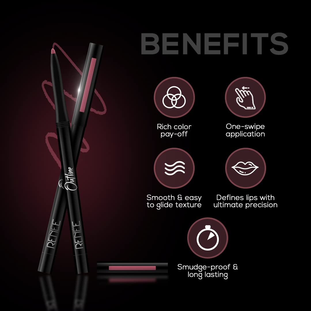 - Sleek & travel-friendly: RENEE Outline Lip Liner comes in a sleek and ergonomic design which makes its application quick and easy even for beginners. Moreover, due to its sleek and travel-friendly size, these liners can be carried everywhere and are easy to store too.