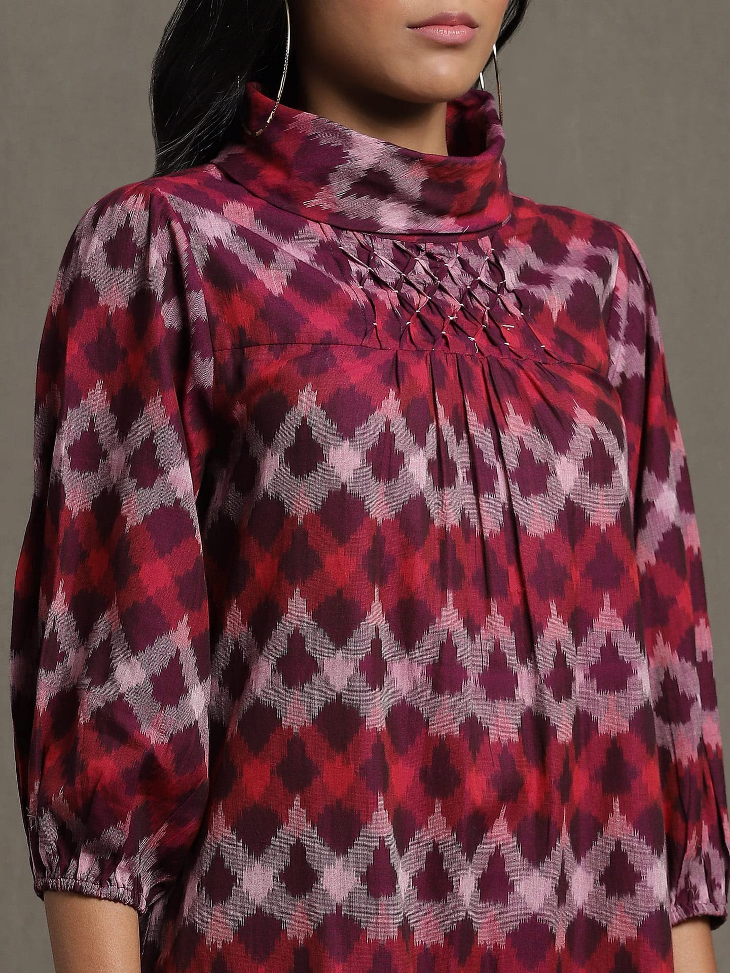 Ritu Kumar Purple Pleated High Neck Midi Dress with Ruffled Hem