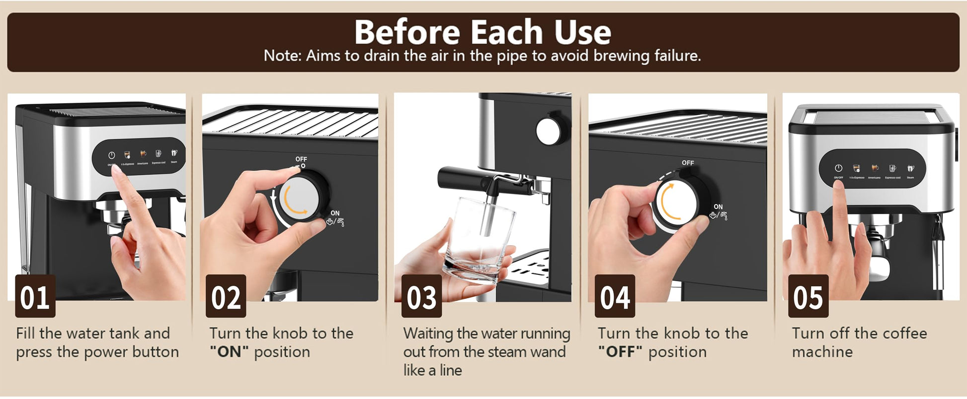 - 1350 Watts Powerful Fast Heating Thermo Block for Quick and Efficcient Usage, Instant switching between espresso and steamng function no wait time.