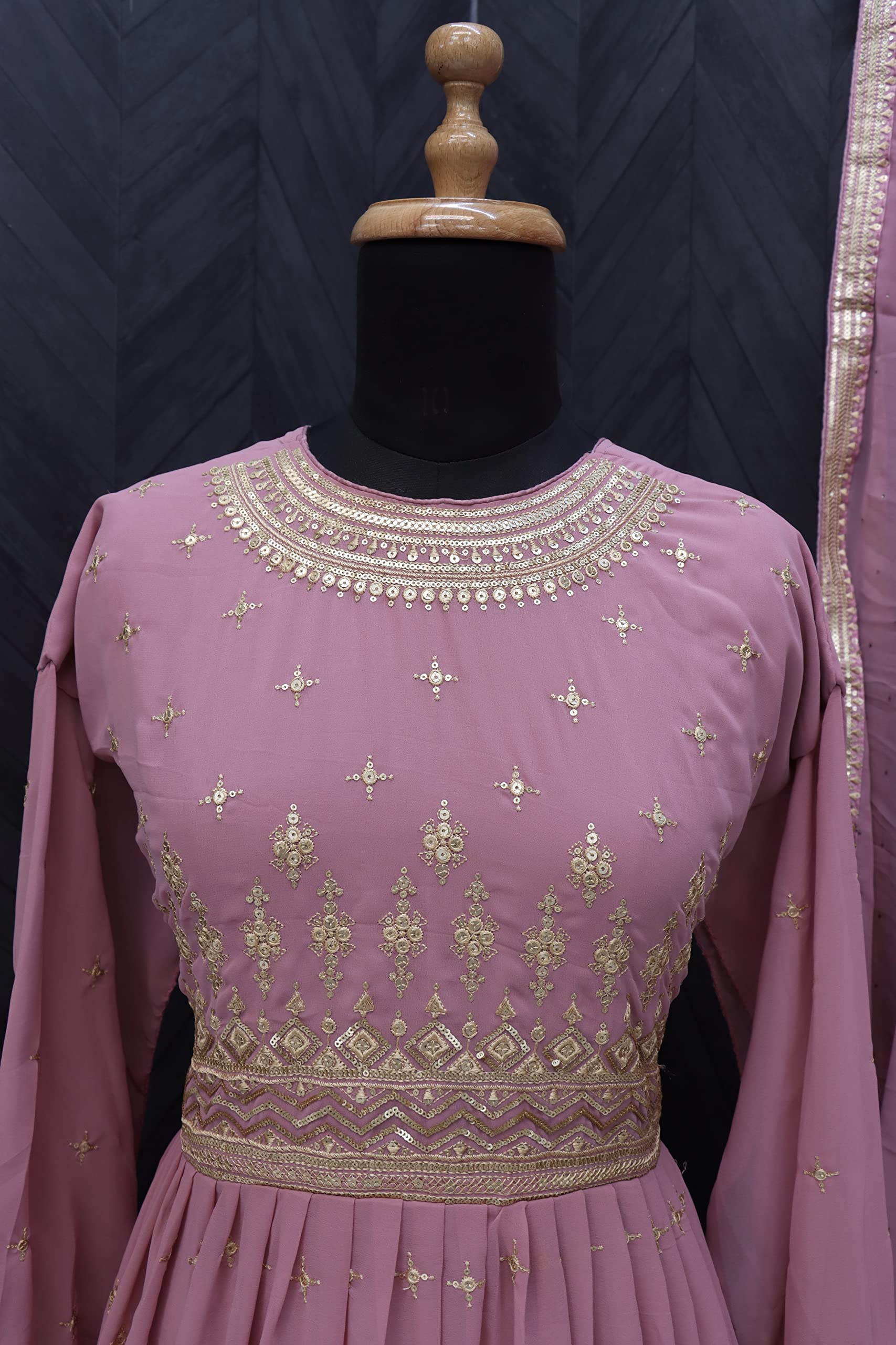 RUDRAPRAYAG Georgette Embroidered Semi-Stitched Gown For Women