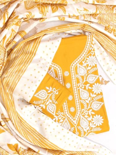 S SALWAR STUDIO Cotton Embroidered Yellow Unstitched Dress Material