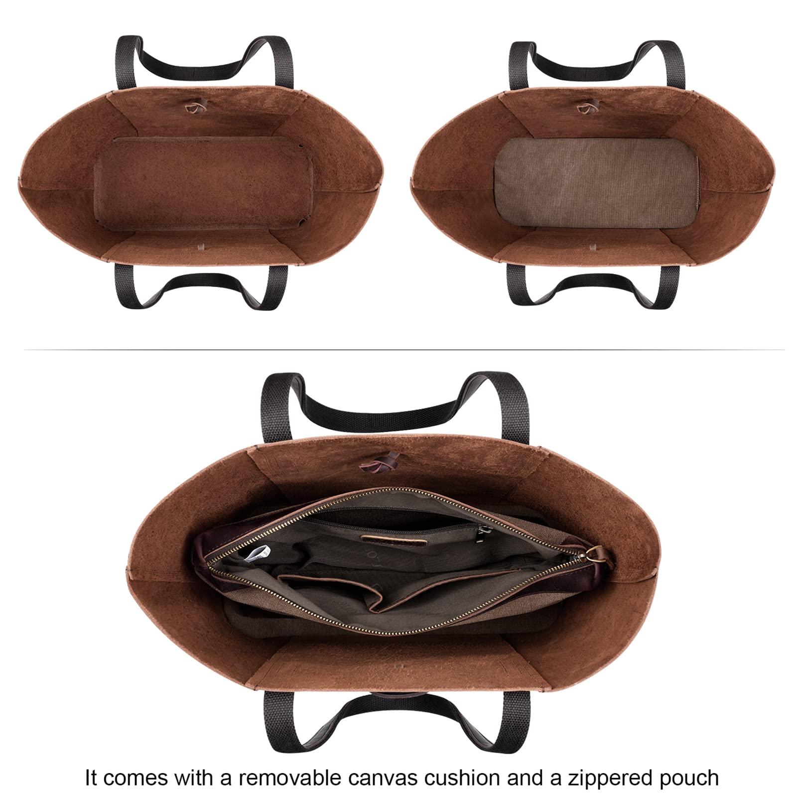 S-ZONE Vintage Crazy Horse Leather Tote Shoulder Bag Purse with Removable Pouch