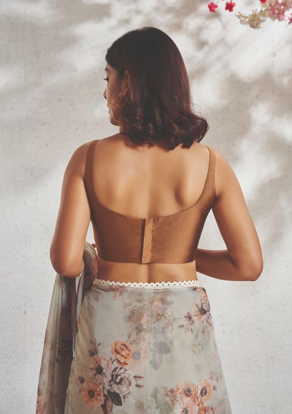 Salwar Studio Copper Taffeta Sleeveless Readymade Blouse- Pack of 1.
