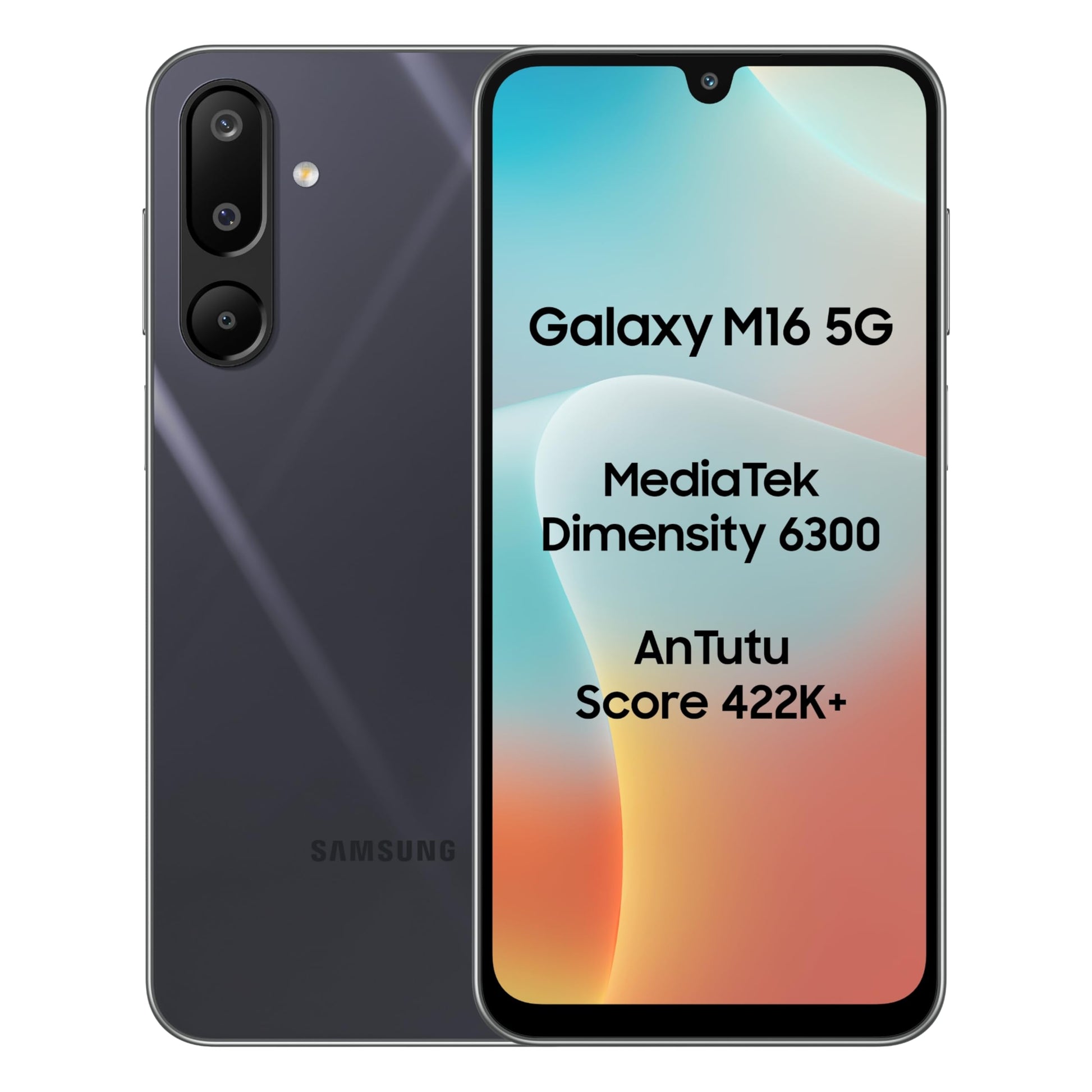 Samsung Galaxy M16 5G (Thunder Black, 6GB RAM, 128 GB Storage) | MediaTek Dimensity 6300 | AnTuTu Score 422K+ | Super Amoled Display | 25W Fast Charging | 6 Gen. of OS Upgrades | Without Charger