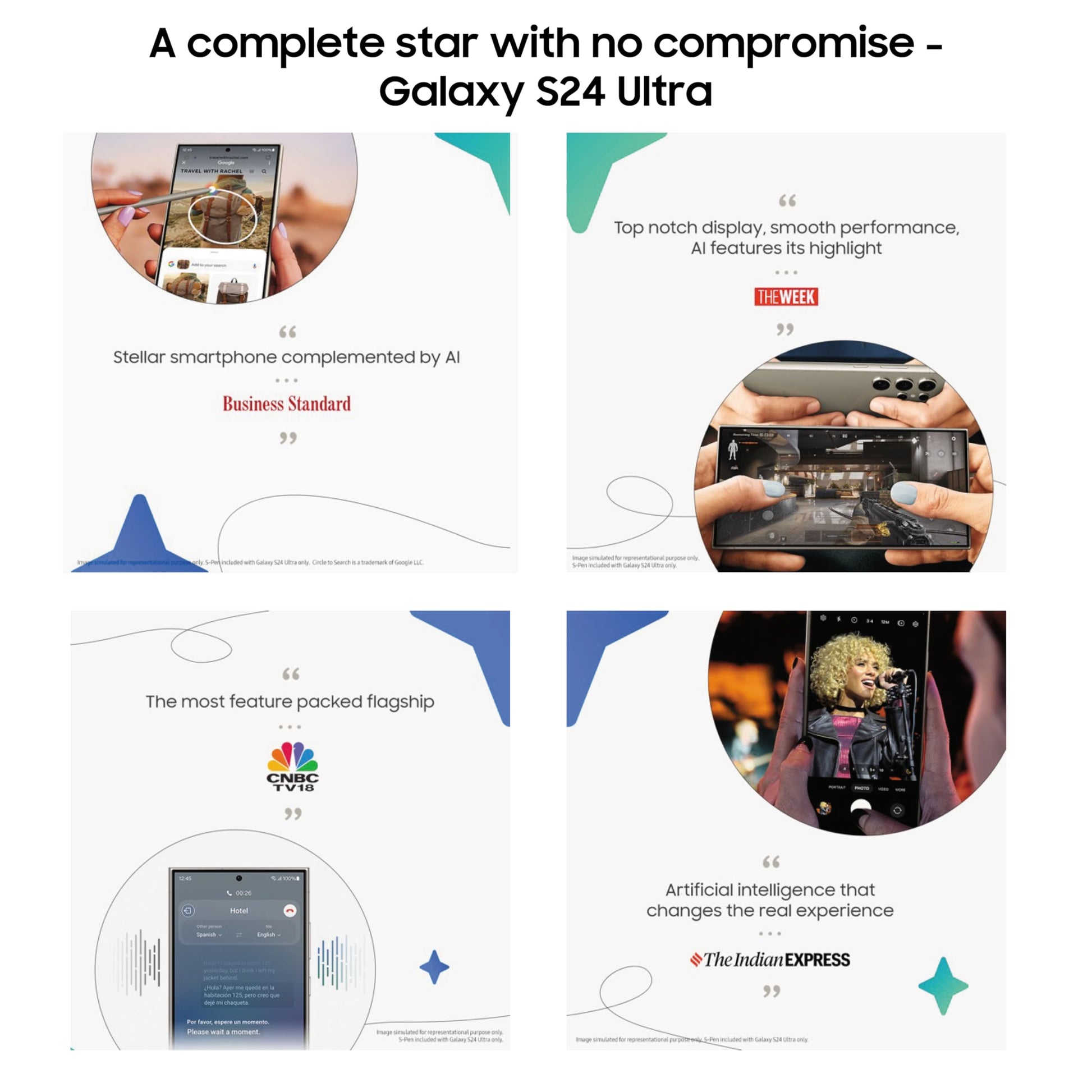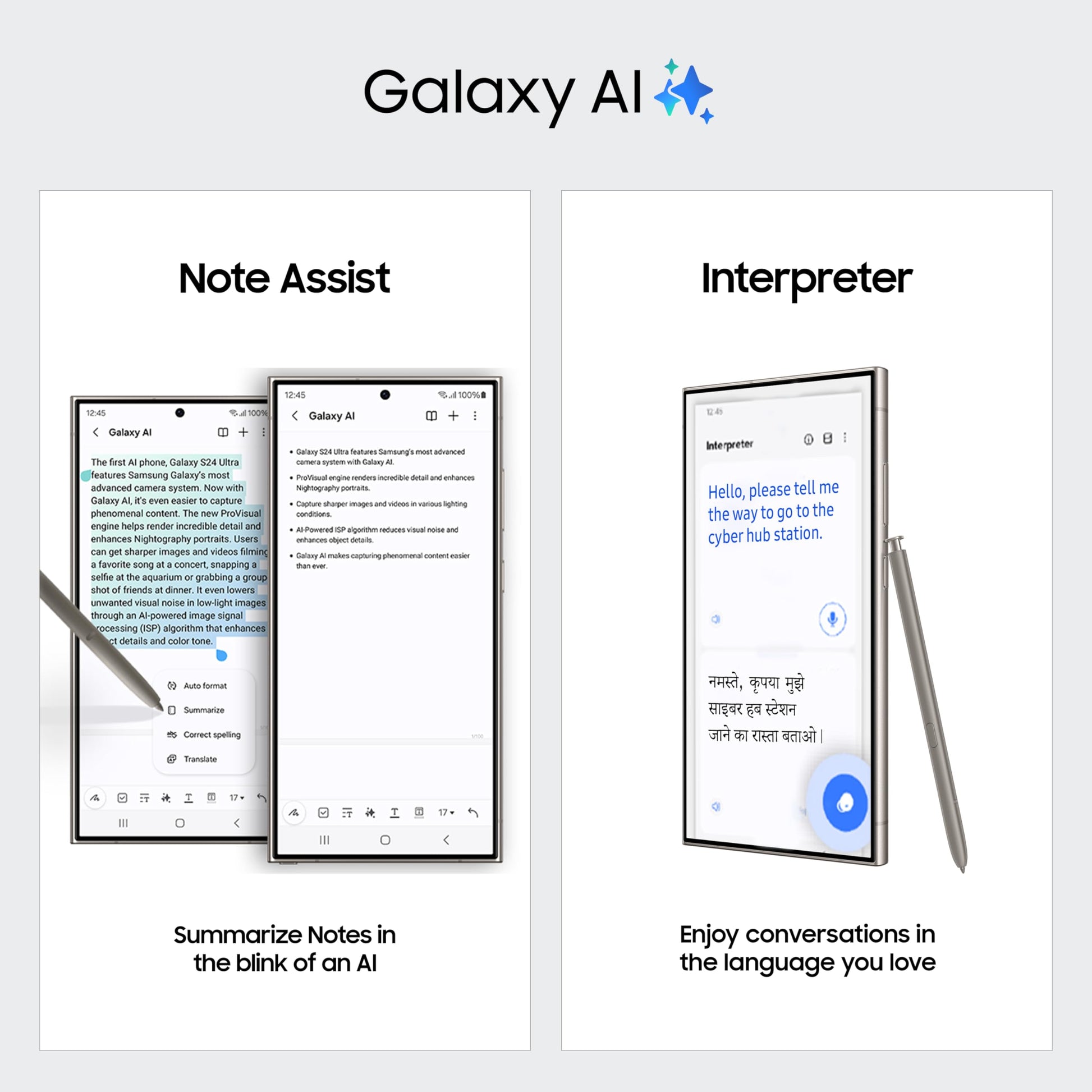 - GALAXY AI - Welcome to the era of mobile AI. With Galaxy S24 Ultra in your hands, you can unleash whole new levels of creativity, productivity and possibility — starting with the most important device in your life. Your smartphone.