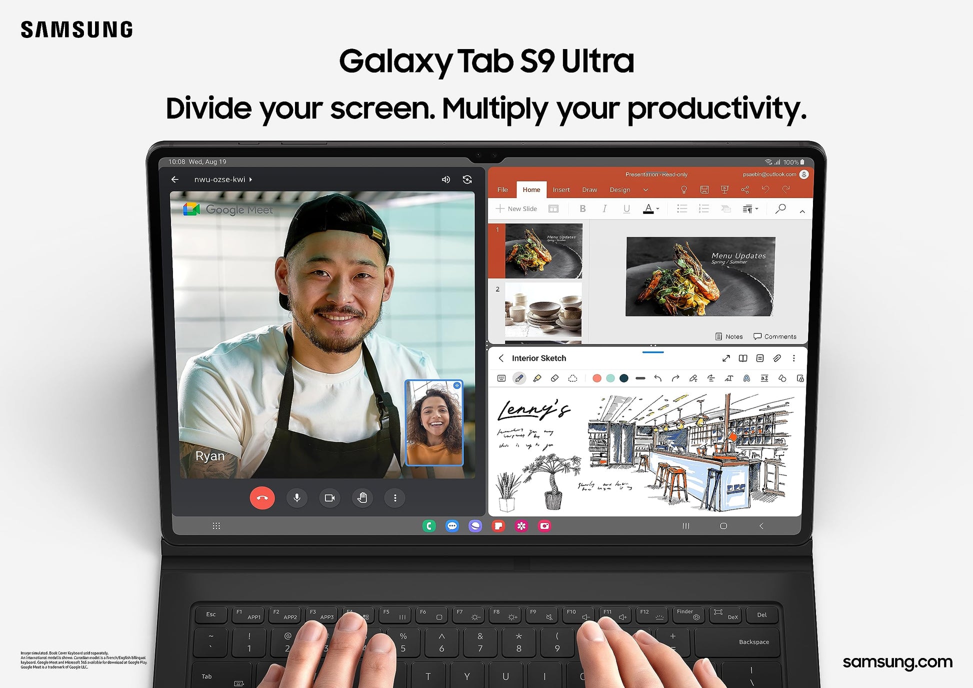 Details: With great power comes great productivity. Backed by the mighty Snapdragon® 8 Gen 2 processor1 and a long-lasting battery that can keep up with your dynamic lifestyle, Galaxy TabS9 Ultra redefines how you conquer your to-do list. With the ultra-large 14.6” screen,2 you can work like a boss.