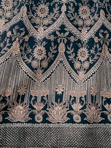 SAPTRANGI Women's Embroidered Ready to Wear Lehenga & Blouse with Dupatta (Navy Blue & Beige, XL)