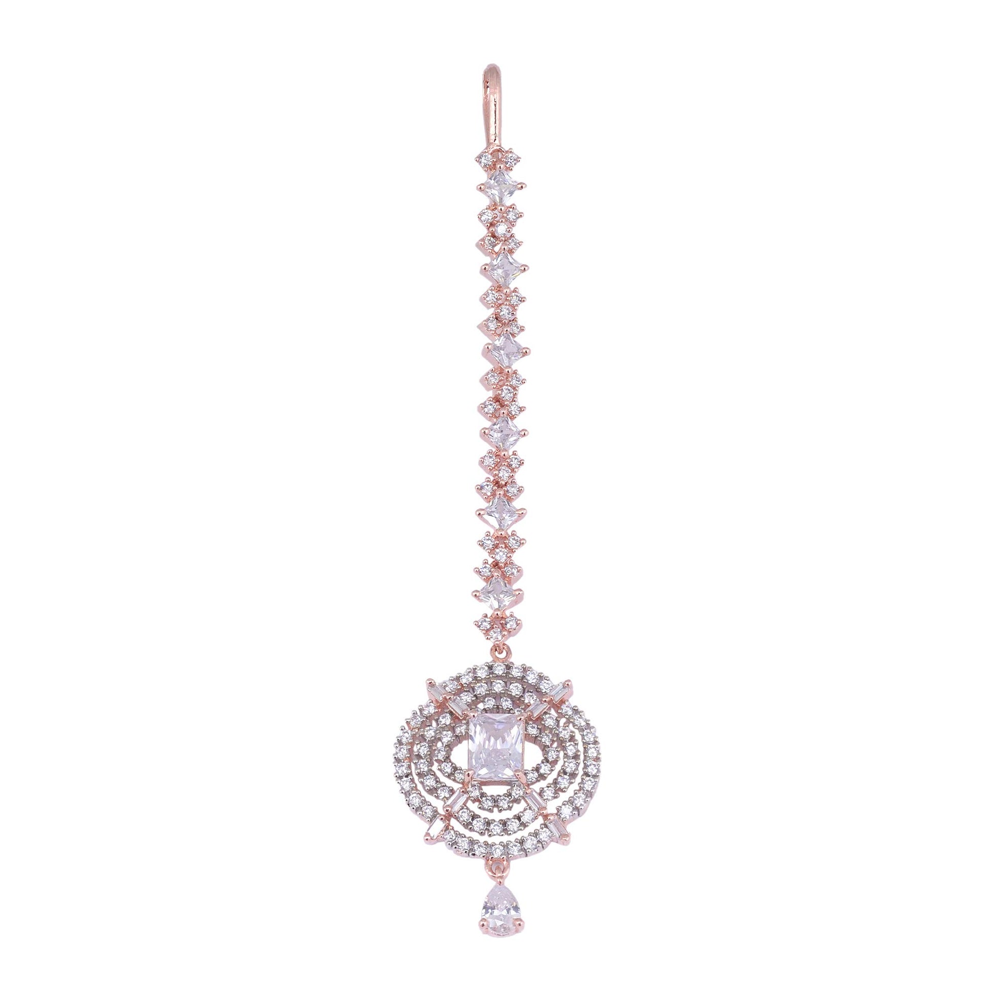 Saraf RS Jewellery-Solitaire Maang Tikka American studded Rose for Women & Girls