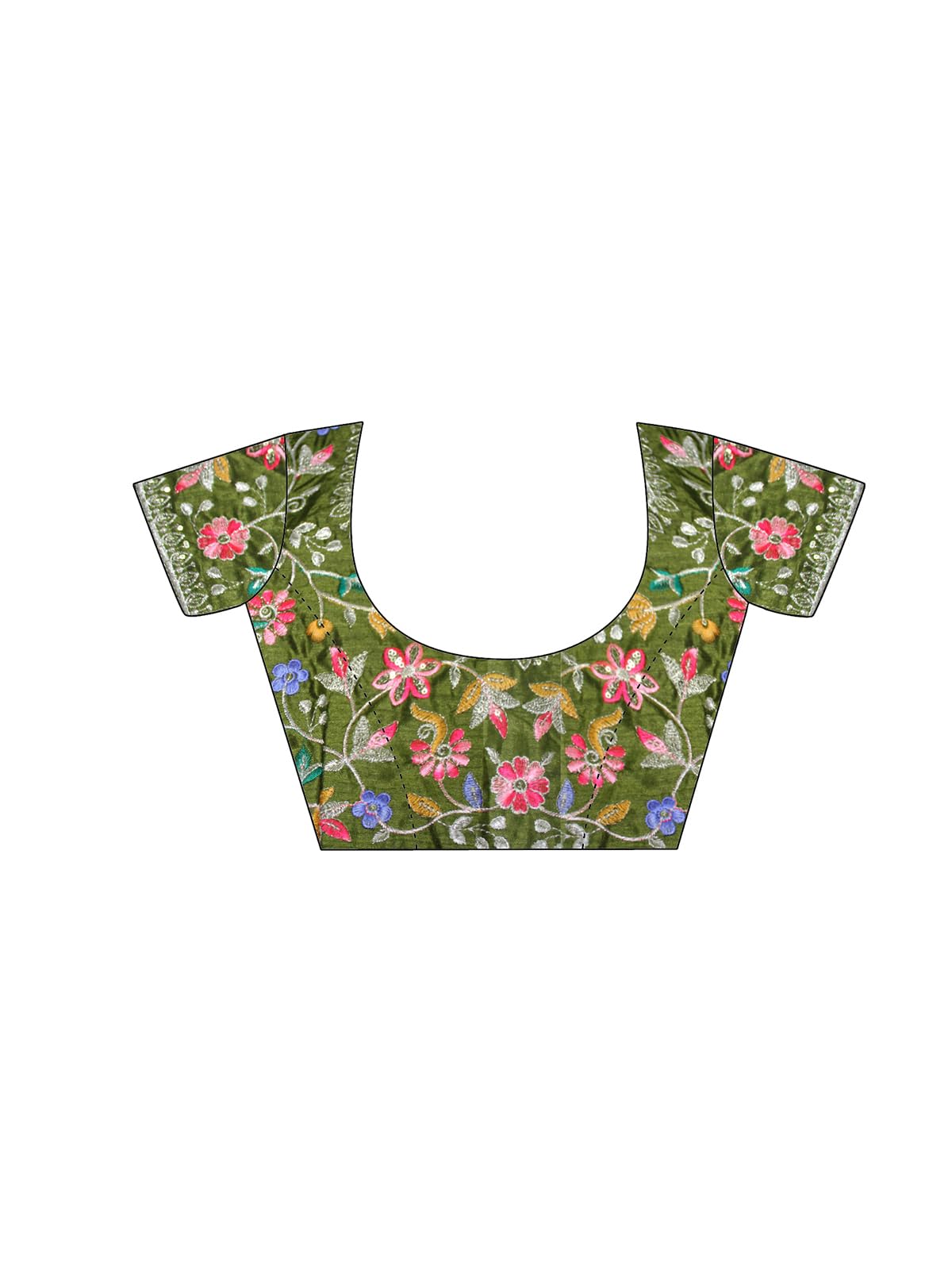 - Color :: Saree Color : Mehandi Green || Blouse Color : Mehandi Green || Disclaimer : Colour Of The Actual Product May Slightly Vary Due To Different Photographic Lighting Sources Or Your Display Color Settings Or Screen Type.