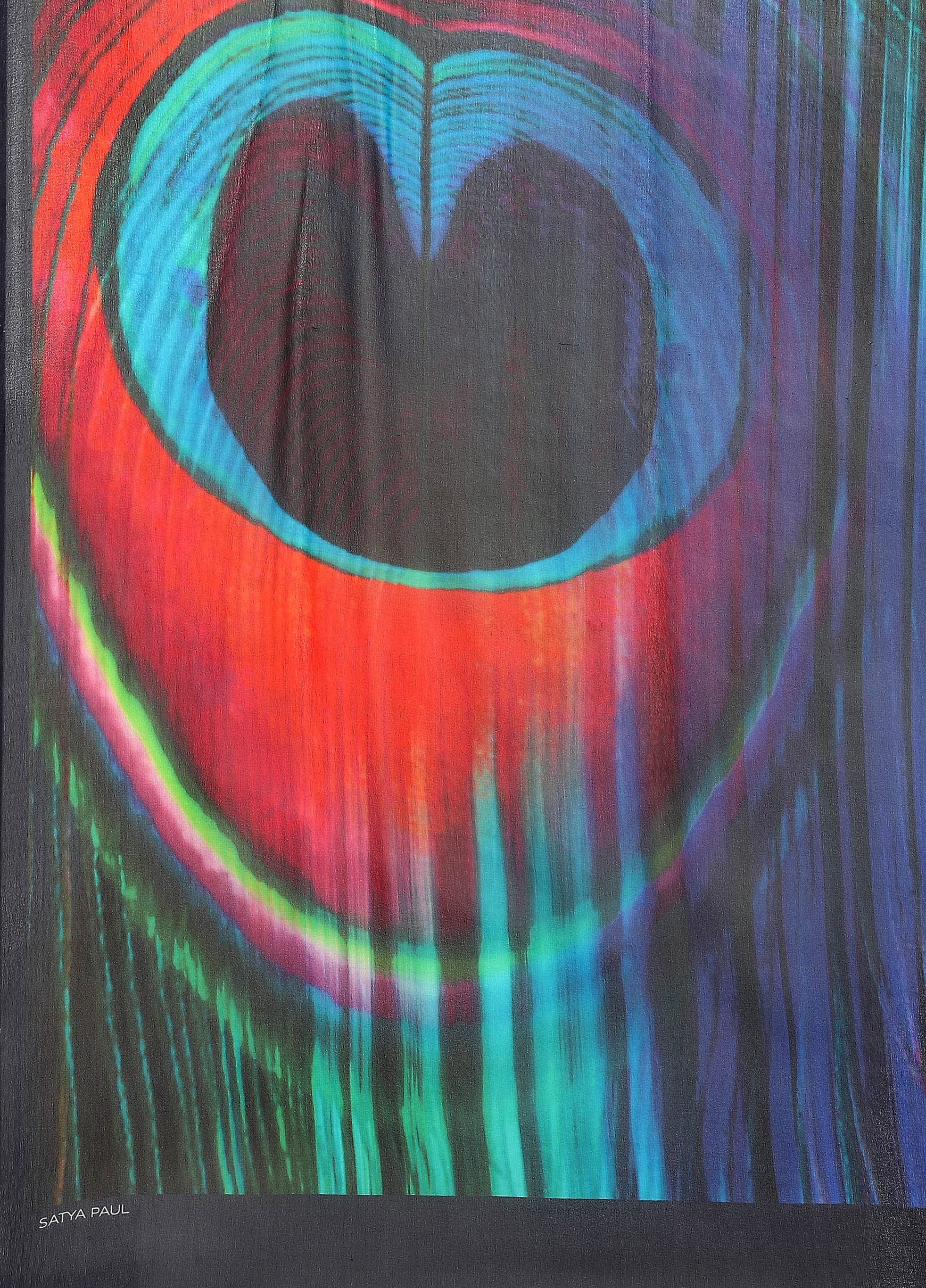 - A sari that plays on the plumage of our national bird. Summery, unique, and sensual.