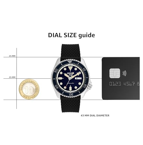 Details: Seiko 5 Sports Collection Comes With Automatic Movement With Hardlex Glass Blue 42.5 mm Round Dial Stainless Steel Case Black Silicone Strap/Band Along With 2 Years Warranty Period