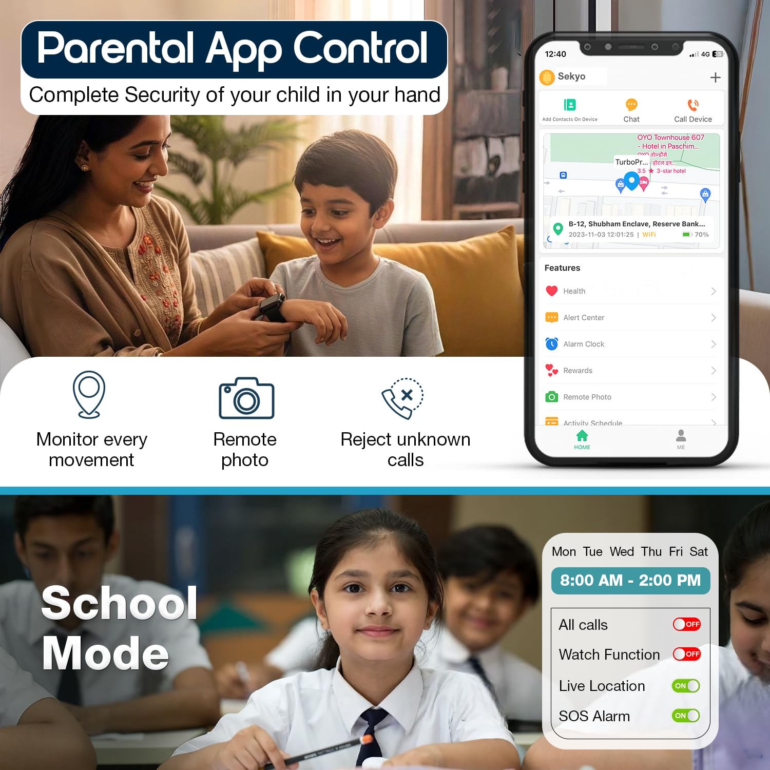 - [Parent Control App] : Full parental control at your fingertips! Enable class mode, disable selected functions, or lock the watch screen remotely. Keep distractions away during school hours while ensuring your child’s digital safety.