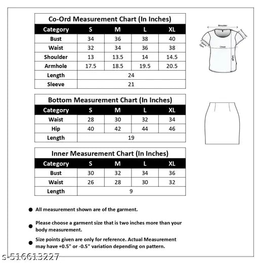 S (Top Bust Size34 in, Top Length Size 24 in, Top Hip Size 36 in, Bottom Waist Size 28 in, Bottom Hip Size 42 in, Bottom Length Size 24 in)