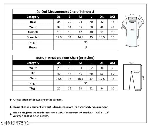 S (Top Bust Size36 in, Top Length Size 30 in, Top Hip Size 38 in, Bottom Waist Size 28 in, Bottom Hip Size 42 in, Bottom Length Size 30 in)