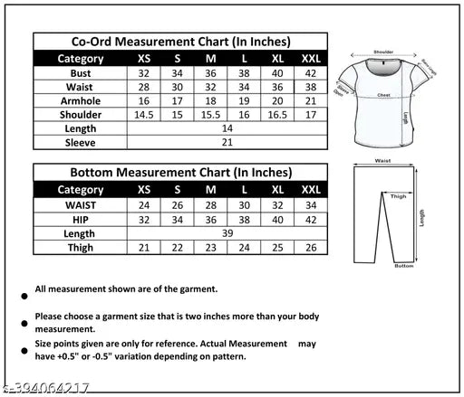 S (Top Bust Size34 in, Top Length Size 14 in, Bottom Waist Size 26 in, Bottom Length Size 14 in)
