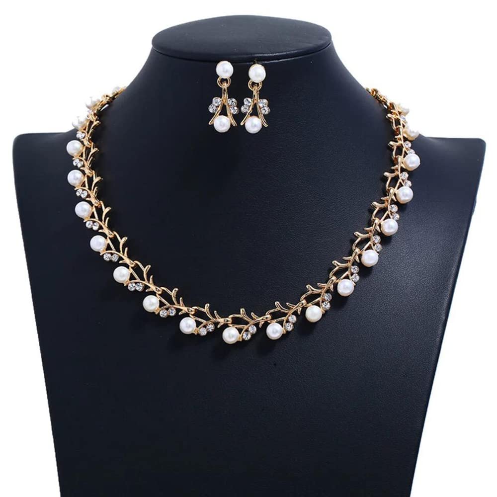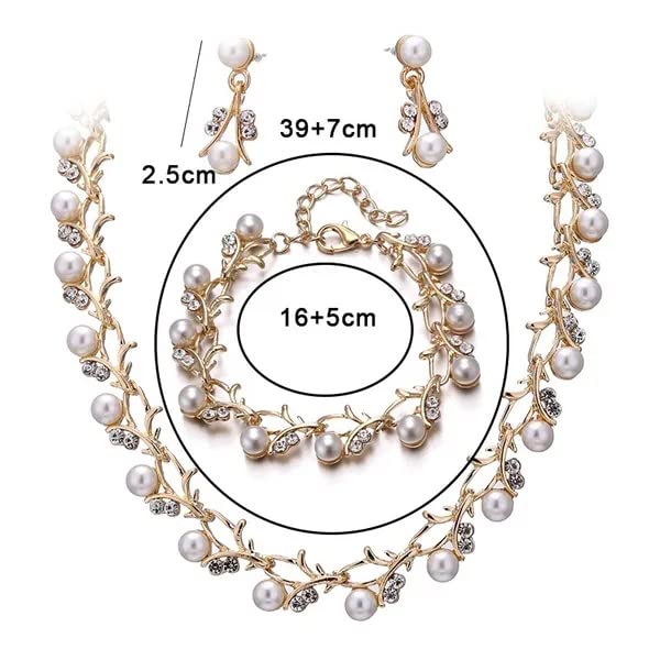- Stylish simulated pearl necklace jewellery with earrings and bracelet