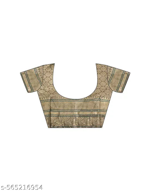 This Season Grey Saree ,black saree , silk saree , net saree , cotton saree with Silk Gold & Grey Blouse Piece.