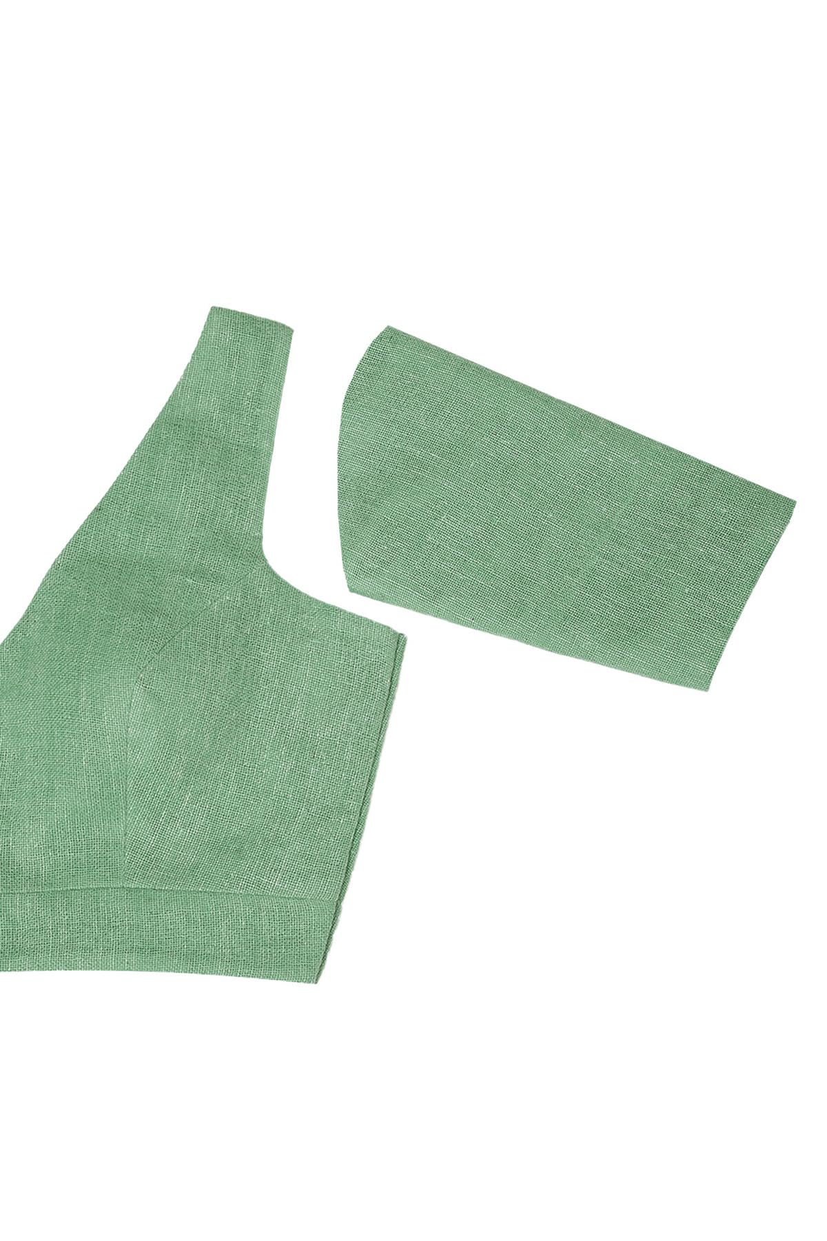 Explore fresh fancies with our charcoal jute padded blouse and secured with hook & eye back closure. This blouse can be paired with a cotton saree for a comfortable look. The blouse has a v-neck with sleeveless with add-on unstitched sleeves. The new blouse design features padding to enhance comfort and structure.