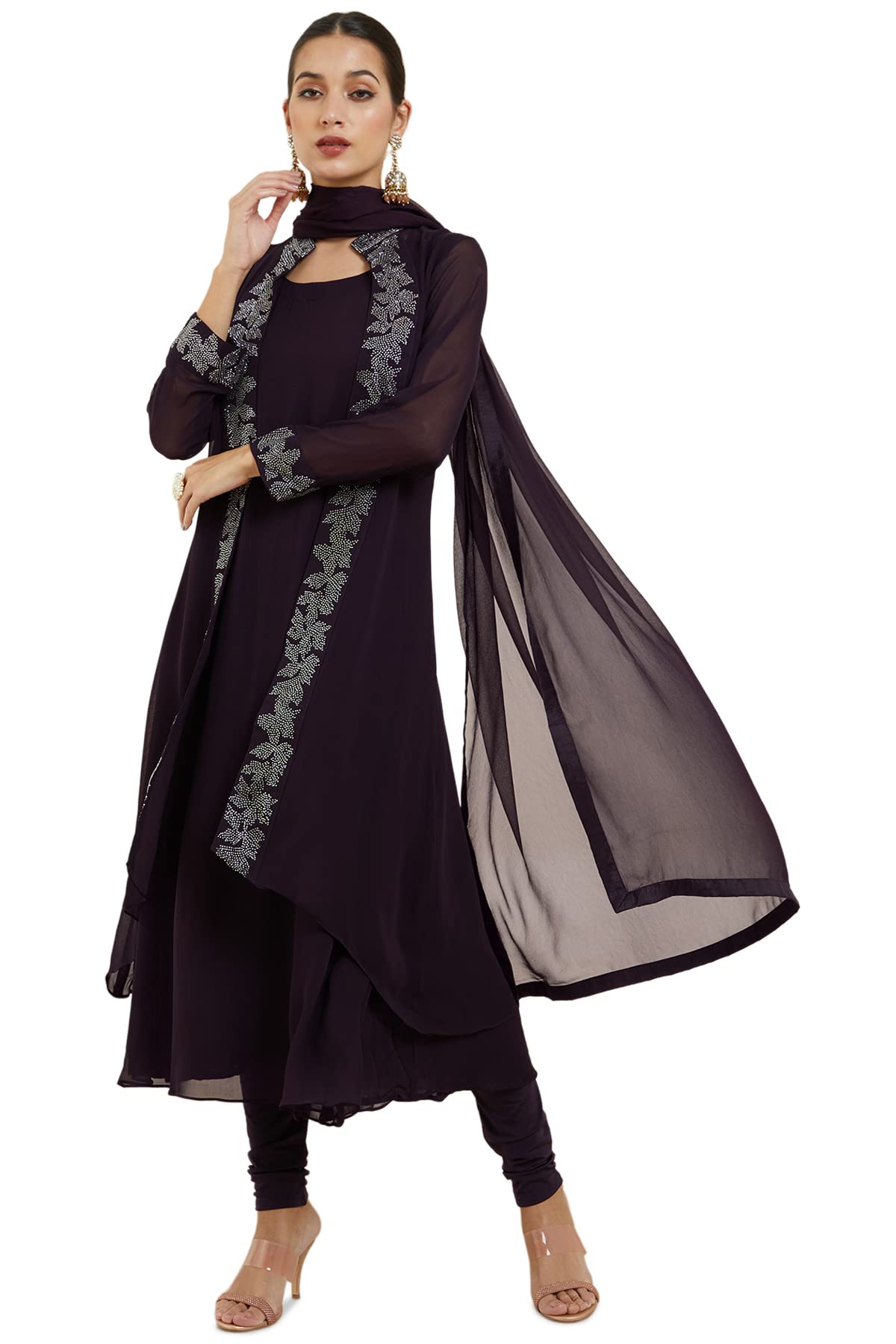Grab all the attention with this Soch Suit Set in Purple. Crafted using the finest Georgette this product is the best choice for a contemporary look. Pair with your favorite Footwear recommendation to complete the look.