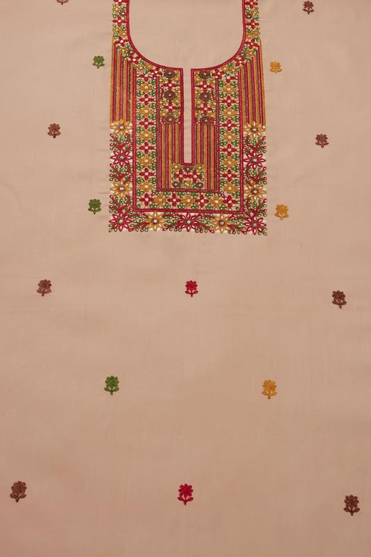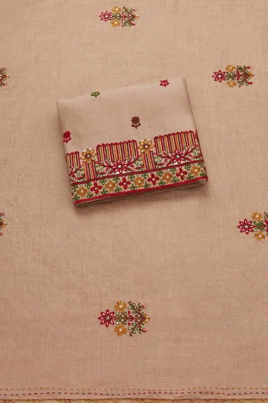 Soch Womens Beige Cotton Blend Embroidered Unstitch Dress Material With Sequins