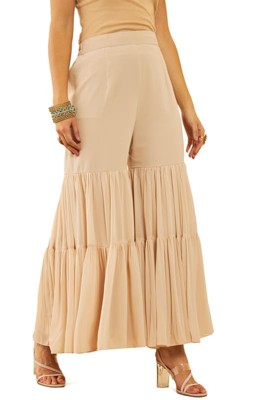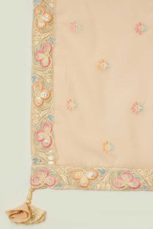 Soch Womens Beige Georgette Sequinned Embellished Suit Set with Tie-Ups