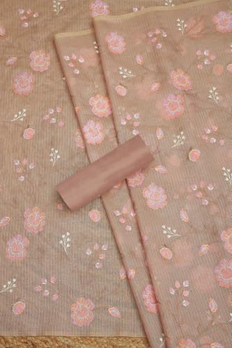 Soch Womens Beige Kota Shimmer Embroidered Unstitch Dress Material With Thread Work