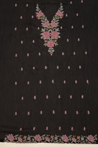 Soch Womens Black Crinkle Chiffon Floral Print Unstitch Dress Material With Stone Work