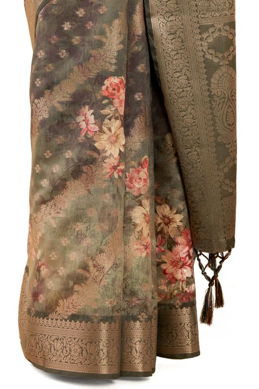 Soch Womens Black Floral Print Jacquard Chanderi Saree