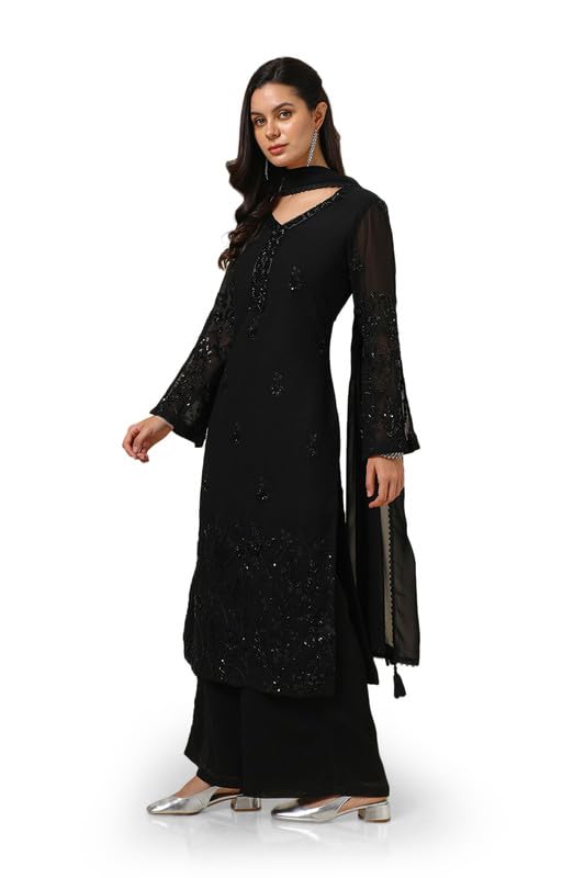 Soch Womens Black Georgette Blend Suit Set With Sequins