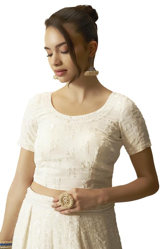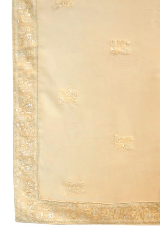 Soch Womens Cream Georgette Geometric Pattern Sequin Embellished Unstitched Lehenga Set