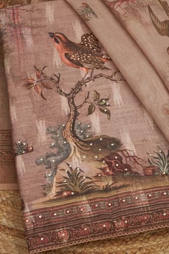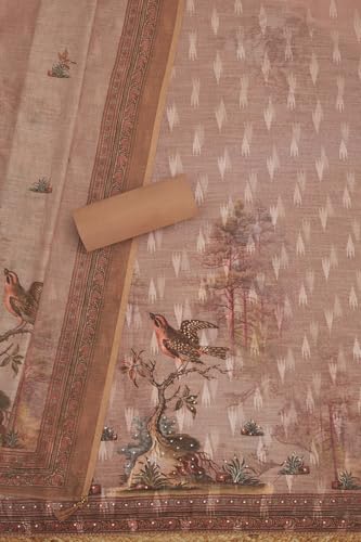 Soch Womens Earth Linen Woven Design Unstitch Dress Material With Sequins