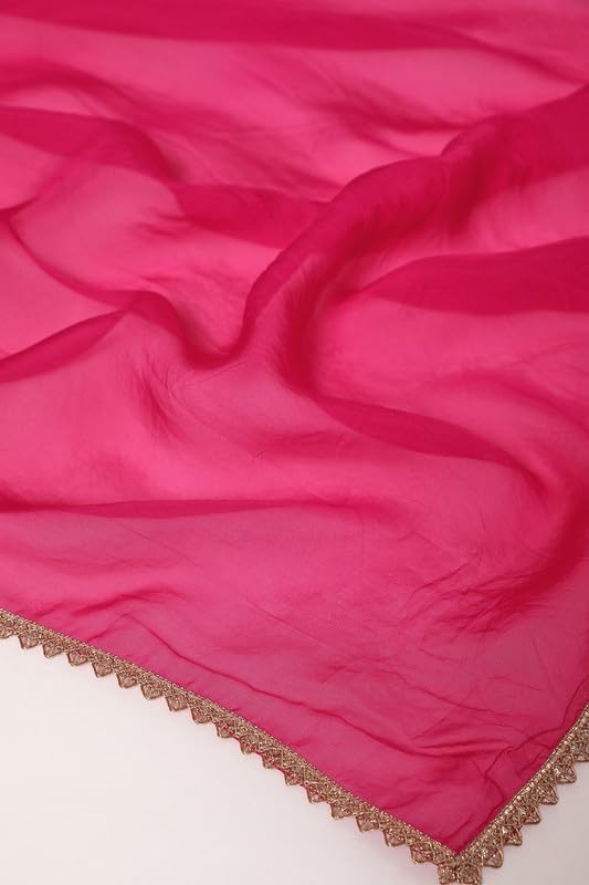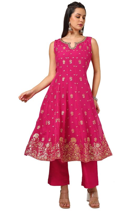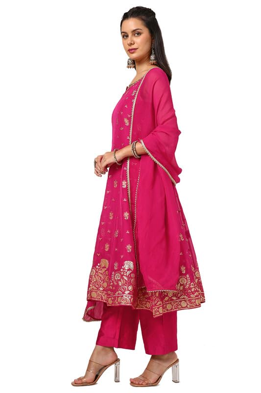 Soch Womens Fuchsia Organza Zari Woven Suit Set With Gotta Patti
