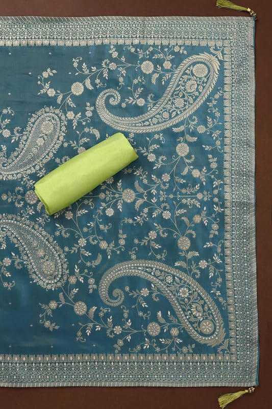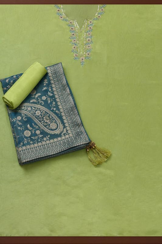 Soch Womens Light Green Tissue Unstitch Dress Material With Sequins