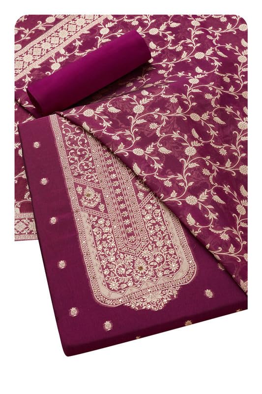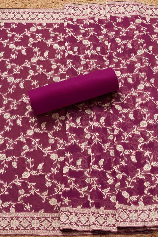 Soch Womens Magenta Organza Zari Woven Unstitch Dress Material With Sequins