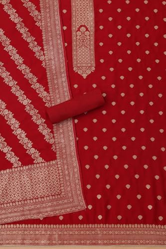 Soch Womens Maroon Russian Silk Zari Woven Unstitch Dress Material With Zari Woven