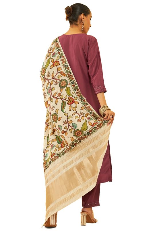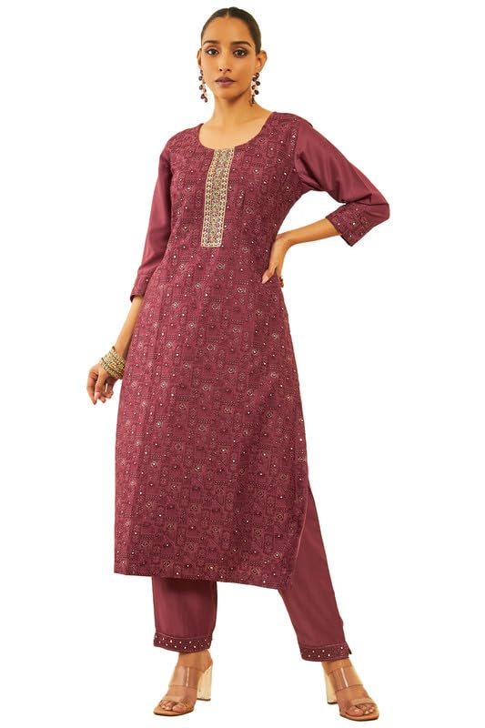 Soch Womens Maroon Silk Blend Embroidered Suit Set with Zardosi Sequinned Work
