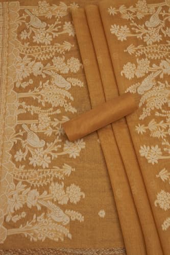 Soch Womens Mustard Chanderi Woven Design Unstitch Dress Material With Sequins