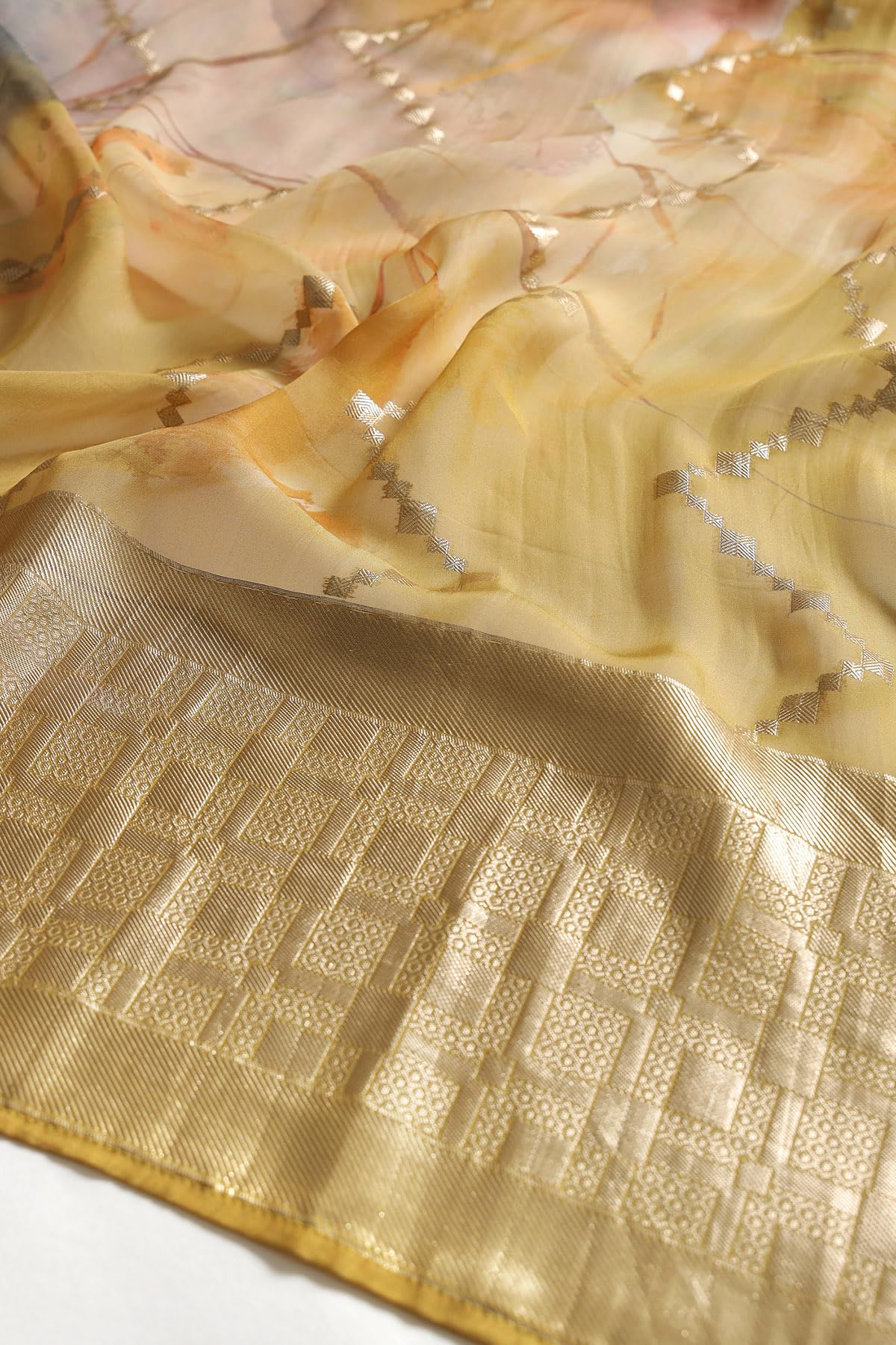 Soch Womens Mustard Organza Zari Woven Suit Set With Faux Mirror And Sequins