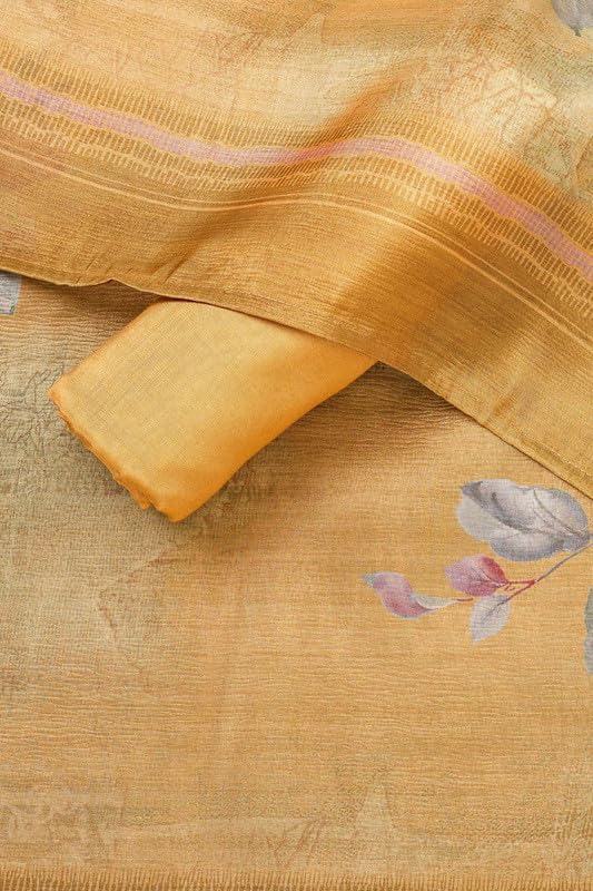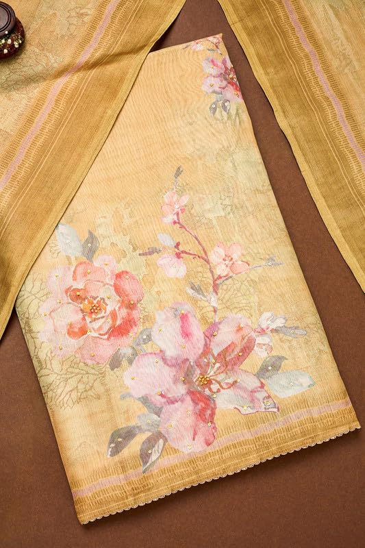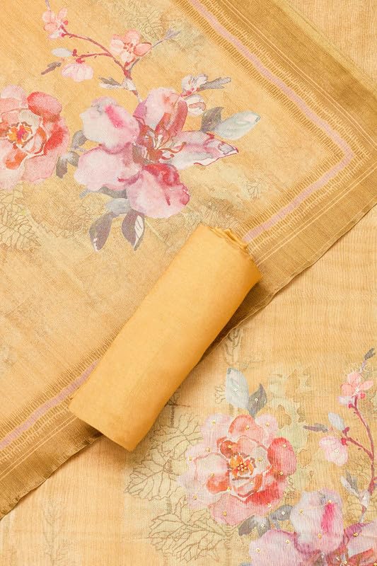 Soch Womens Mustard Silk Blend Floral Print Unstitch Dress Material With Sequins Work