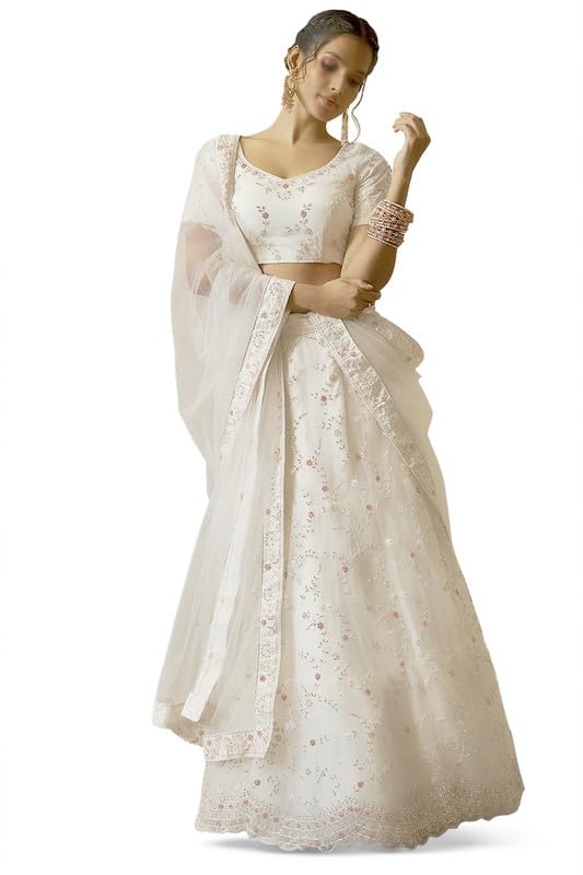 Transform into a vision of timeless beauty this wedding season with our Off White Net Floral Embroidered Stone Embellished Unstitched Lehenga Set, featuring delicate stone accents, this elegant lehenga set comes with an unstitched ghagra, choli, and dupatta. It's not just an outfit; it's a canvas for your unique style. Customize each element to craft a look that resonates with your individuality, ensuring you radiate sophistication and charm at every celebratory moment.