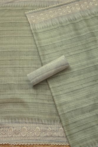 Soch Womens Olive Art Tussar Digital Print Unstitch Dress Material With Thread Work